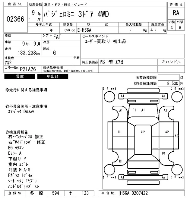 Mitsubishi PAJERO MINI с аукциона Японии ARAI Bayside лот № 2366