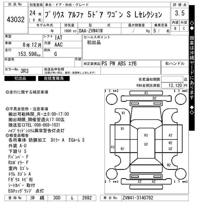 Toyota PRIUS ALPHA с аукциона Японии ARAI Bayside лот № 43032