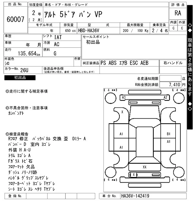 Suzuki ALTO VAN с аукциона Японии ARAI Bayside лот № 60007