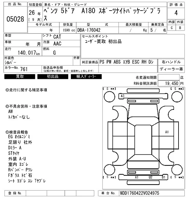 Mercedes-Benz A CLASS с аукциона Японии ARAI Bayside лот № 5028