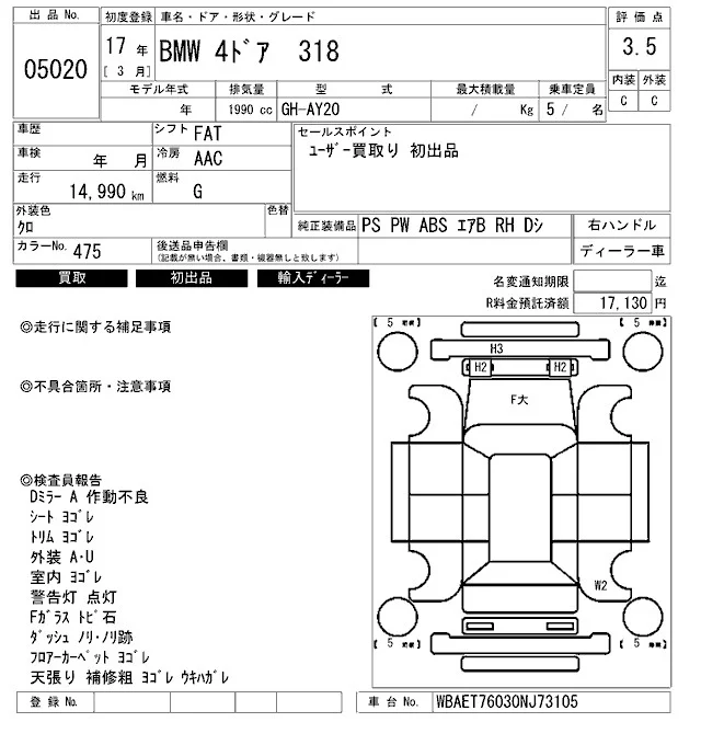 BMW 3-Series с аукциона Японии ARAI Bayside лот № 5020