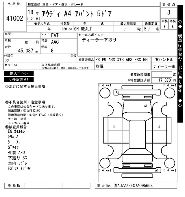 Audi A4 с аукциона Японии ARAI Bayside лот № 41002
