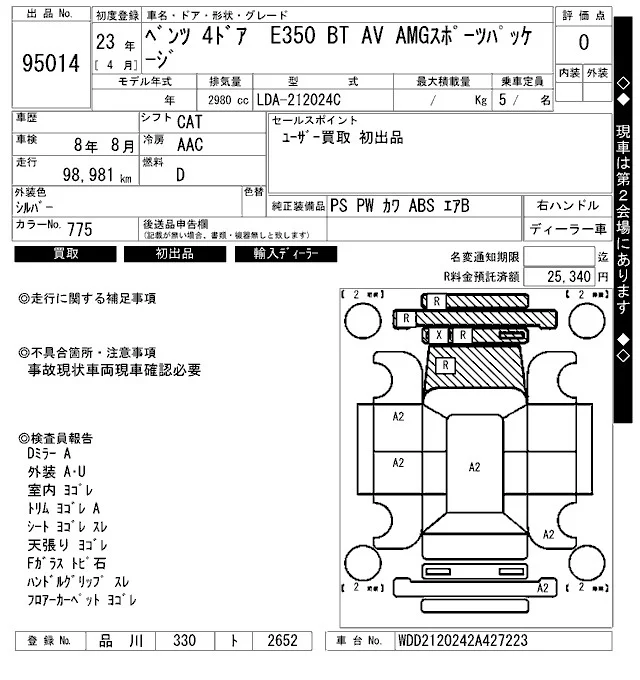 Mercedes-Benz E CLASS с аукциона Японии ARAI Bayside лот № 95014