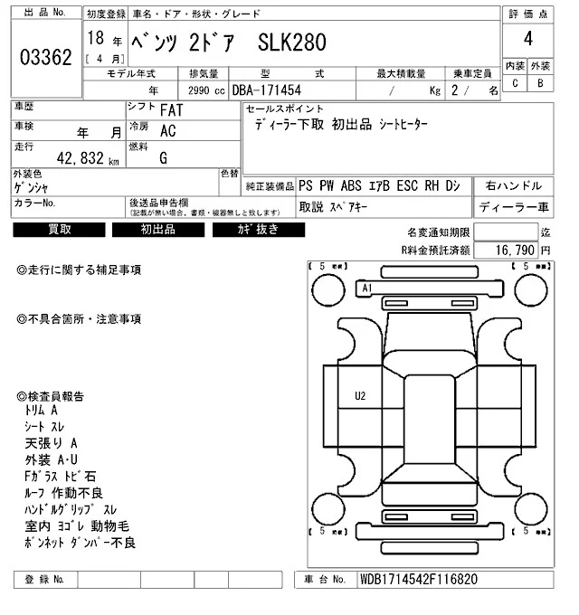 Mercedes-Benz SLK CLASS с аукциона Японии ARAI Bayside лот № 3362
