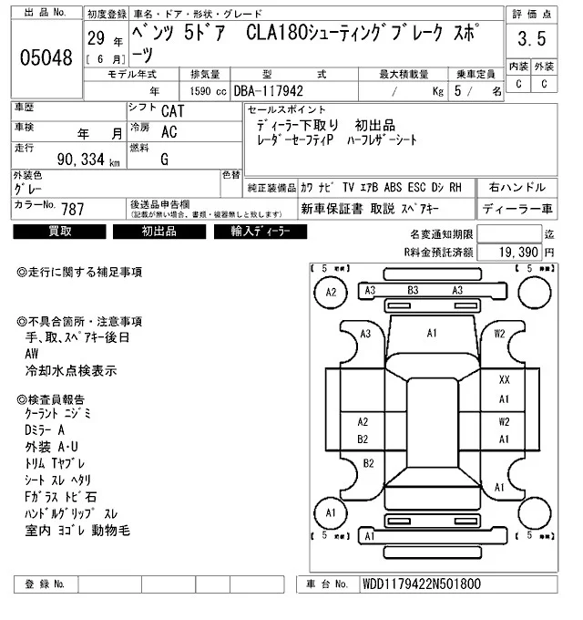Mercedes-Benz CLA CLASS с аукциона Японии ARAI Bayside лот № 5048