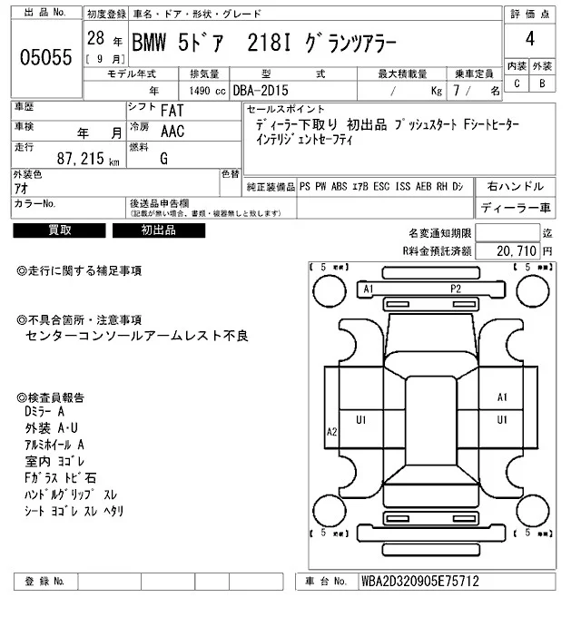 BMW 2-Series с аукциона Японии ARAI Bayside лот № 5055