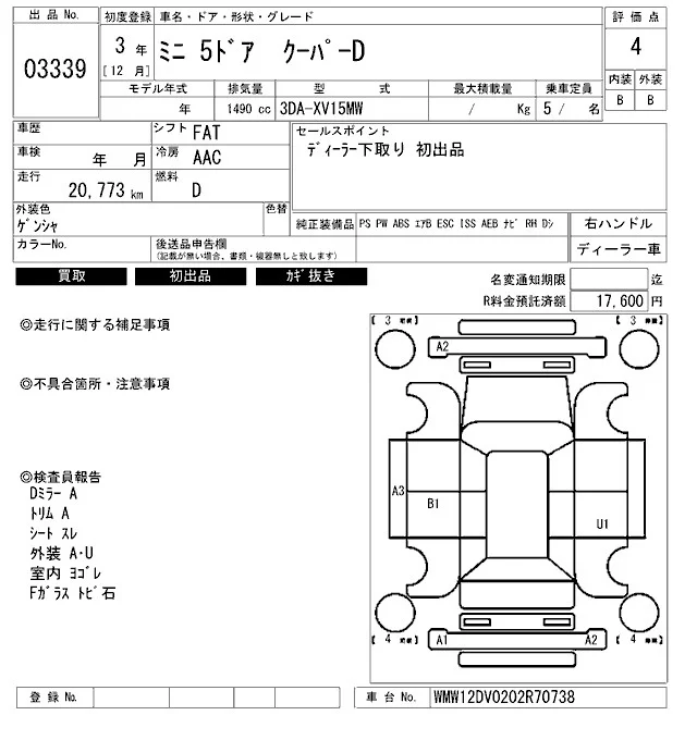 BMW MINI с аукциона Японии ARAI Bayside лот № 3339