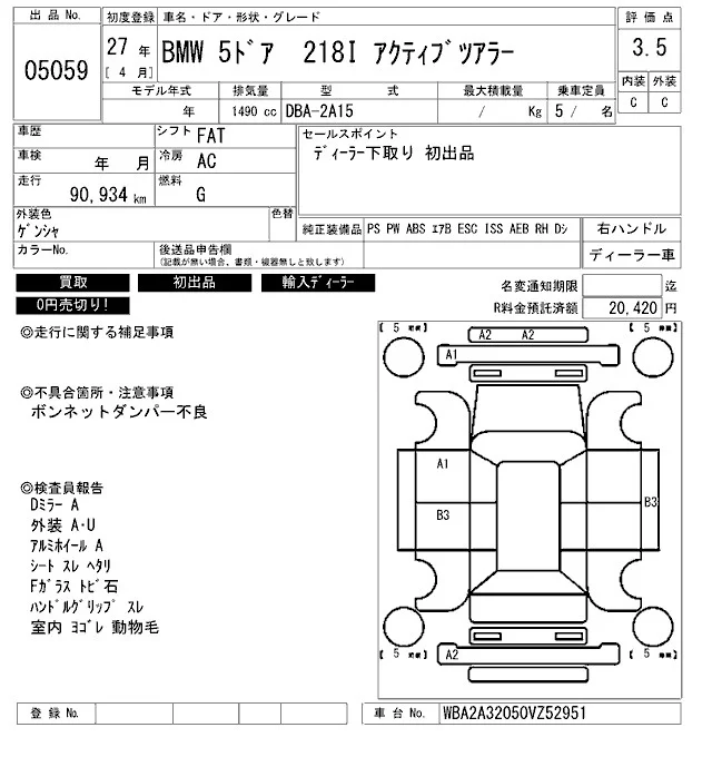 BMW 2-Series с аукциона Японии ARAI Bayside лот № 5059