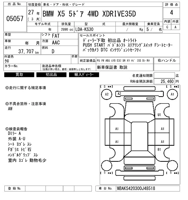 BMW X5 SERIES с аукциона Японии ARAI Bayside лот № 5057