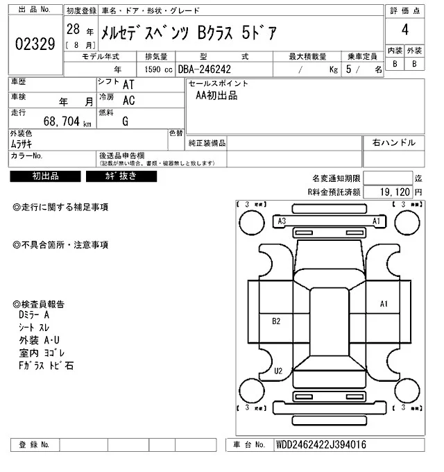 Mercedes-Benz B CLASS с аукциона Японии ARAI Bayside лот № 2329