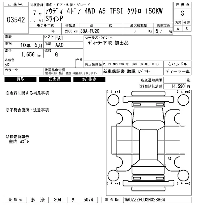Audi A5 с аукциона Японии ARAI Bayside лот № 3542