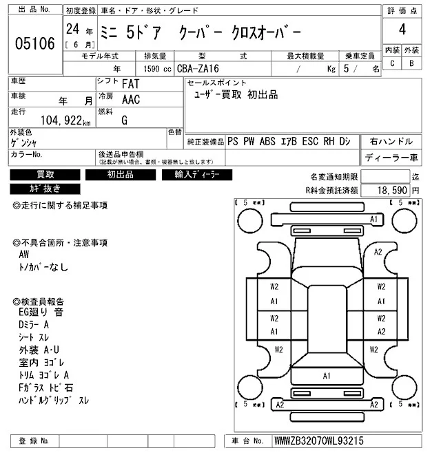 BMW MINI с аукциона Японии ARAI Bayside лот № 5106