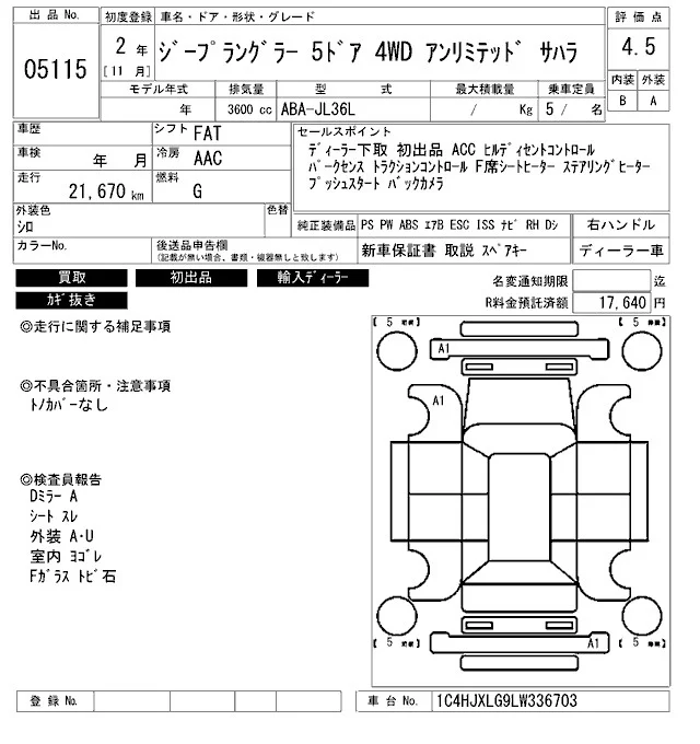 Chrysler JEEP WRANGLER с аукциона Японии ARAI Bayside лот № 5115