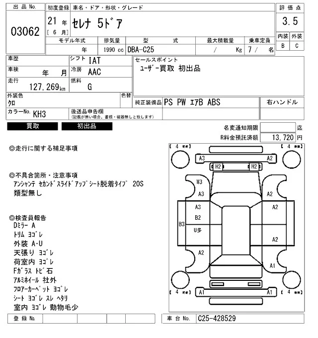 Nissan SERENA с аукциона Японии ARAI Bayside лот № 3062