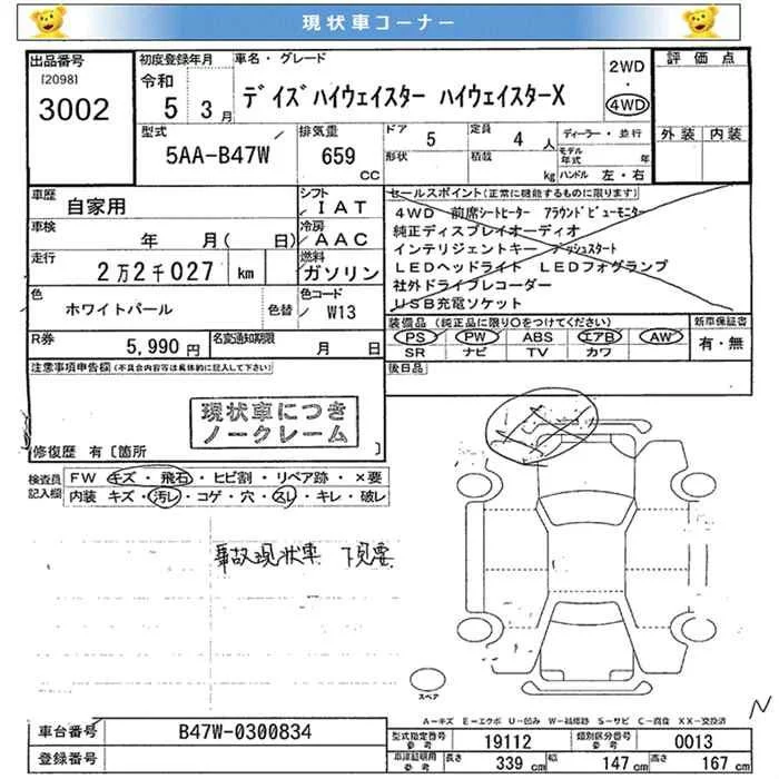 Nissan DAYZ с аукциона Японии JU Miyagi лот № 3002
