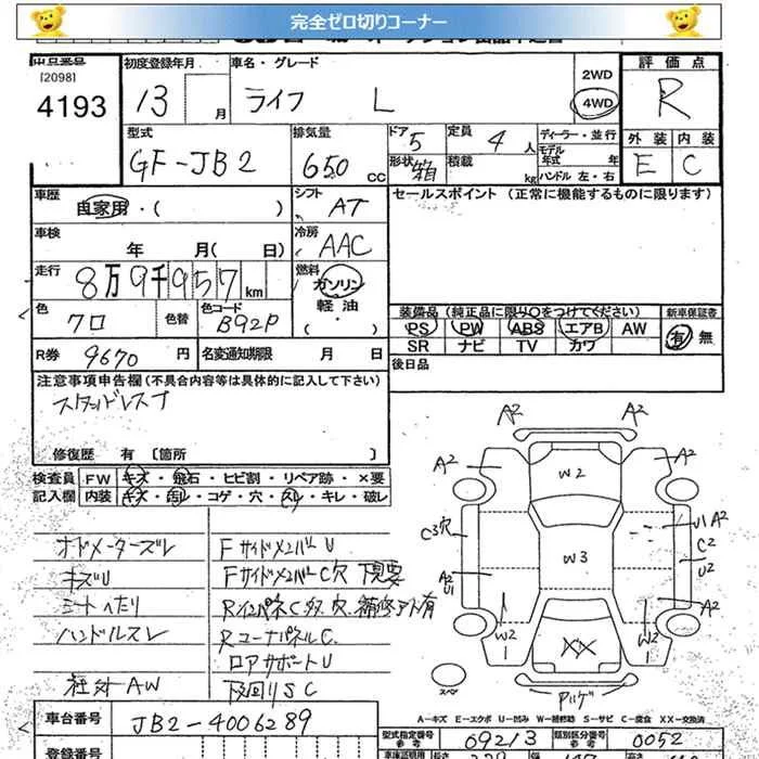 Honda LIFE с аукциона Японии JU Miyagi лот № 4193
