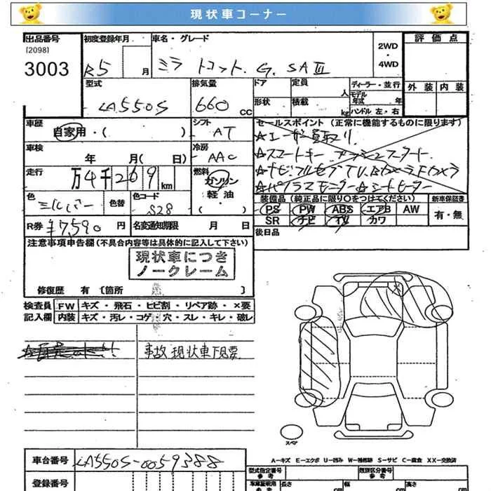 Daihatsu MIRA TOCOT с аукциона Японии JU Miyagi лот № 3003