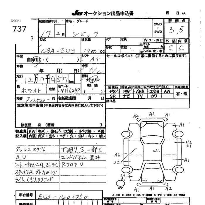 Honda CIVIC с аукциона Японии JU Miyagi лот № 737