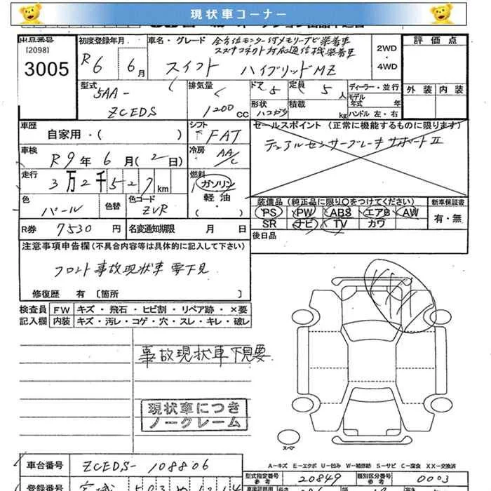 Suzuki SWIFT с аукциона Японии JU Miyagi лот № 3005