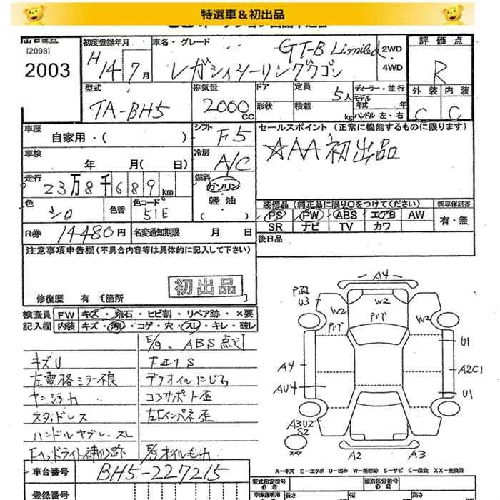 Subaru LEGACY с аукциона Японии JU Miyagi лот № 2003