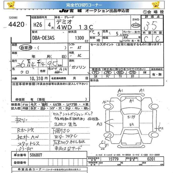 Mazda DEMIO с аукциона Японии JU Miyagi лот № 4420
