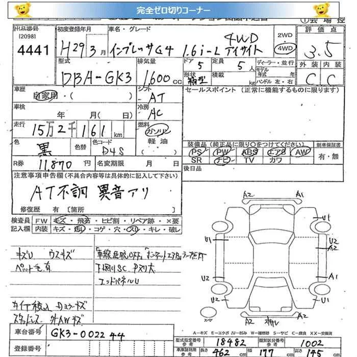 Subaru IMPREZA G4 с аукциона Японии JU Miyagi лот № 4441