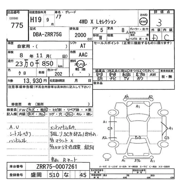 Toyota NOAH с аукциона Японии JU Miyagi лот № 775