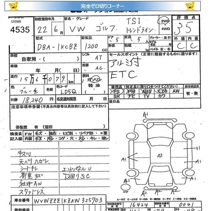 Volkswagen GOLF с аукциона Японии JU Miyagi лот № 4535