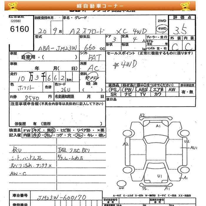 Mazda AZ-OFFROAD с аукциона Японии JU Miyagi лот № 6160