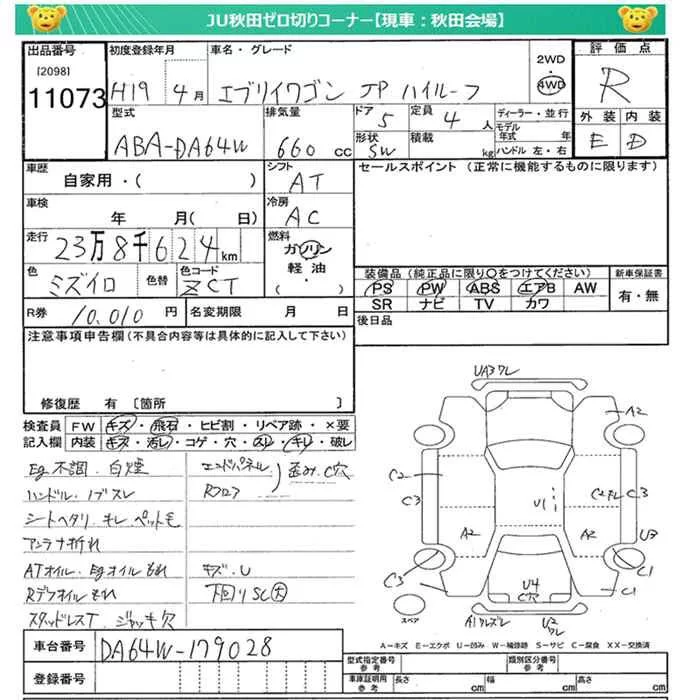 Suzuki EVERY WAGON с аукциона Японии JU Miyagi лот № 11073