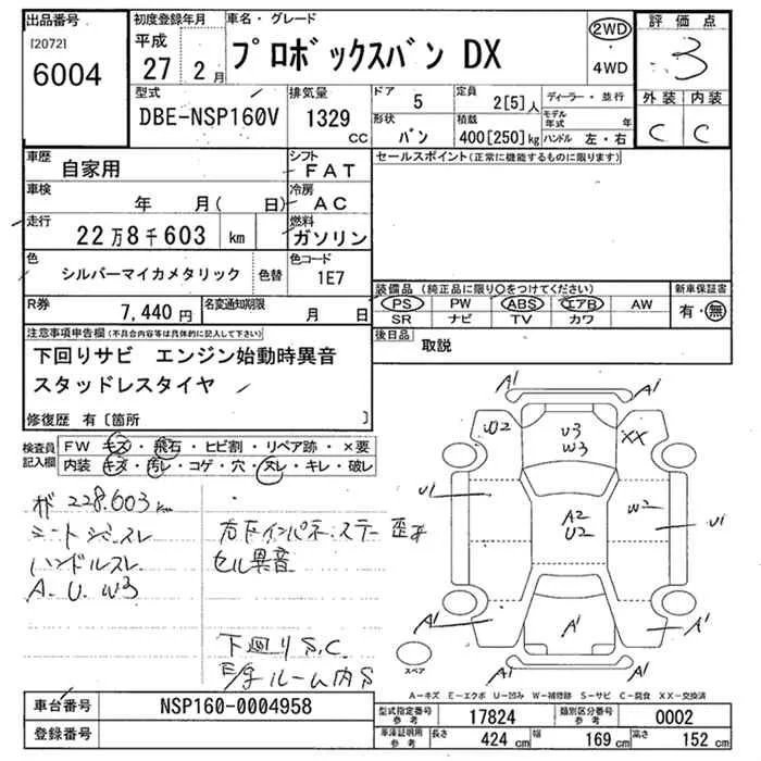 Toyota PROBOX с аукциона Японии JU Niigata лот № 6004
