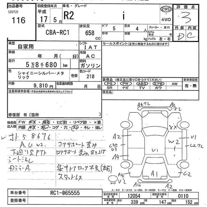 Subaru R2 с аукциона Японии JU Niigata лот № 116