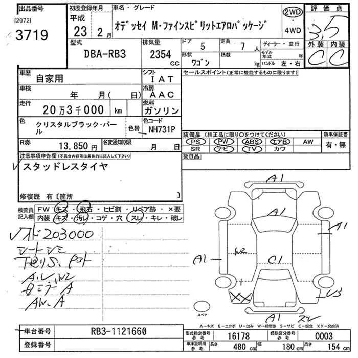 Honda ODYSSEY с аукциона Японии JU Niigata лот № 3719