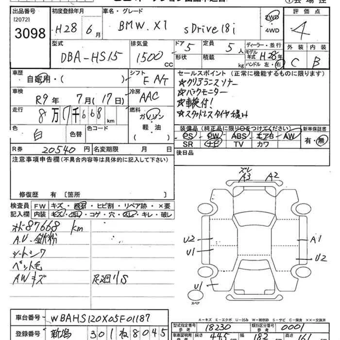 BMW X1 с аукциона Японии JU Niigata лот № 3098