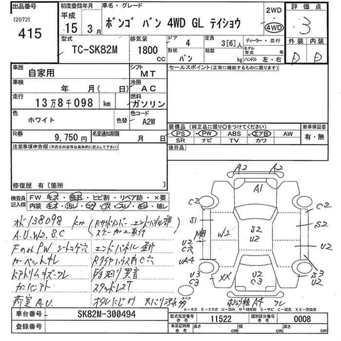 Mazda BONGO VAN с аукциона Японии JU Niigata лот № 415