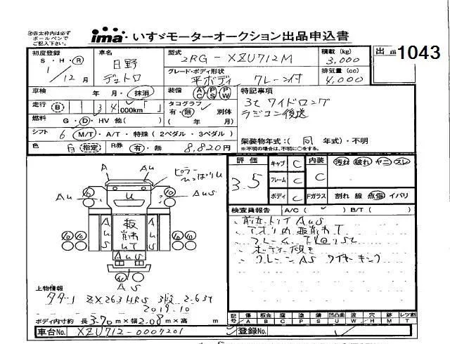 Hino DUTRO с аукциона Японии Isuzu Kobe лот № 1043