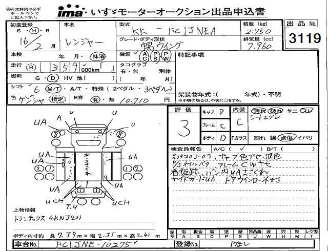 Hino RANGER с аукциона Японии Isuzu Kobe лот № 3119