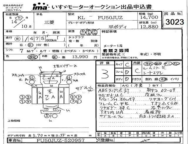 Mitsubishi FUSO TRUCK с аукциона Японии Isuzu Kobe лот № 3023
