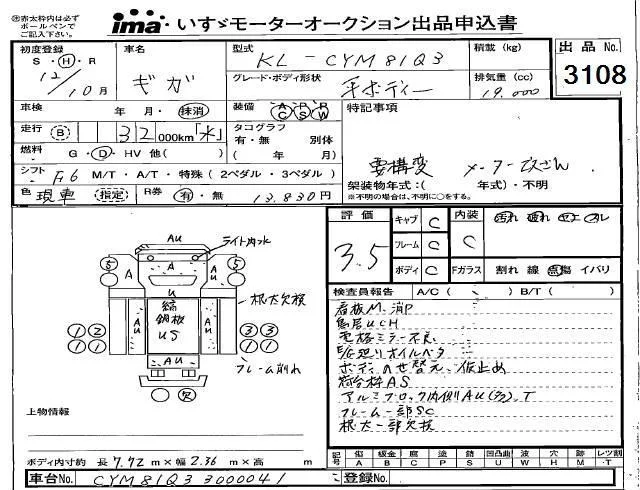 Isuzu TRUCK с аукциона Японии Isuzu Kobe лот № 3108