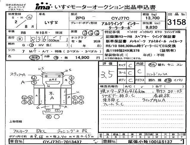 Isuzu TRUCK с аукциона Японии Isuzu Kobe лот № 3158