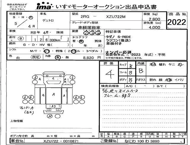 Hino DUTRO с аукциона Японии Isuzu Kobe лот № 2022