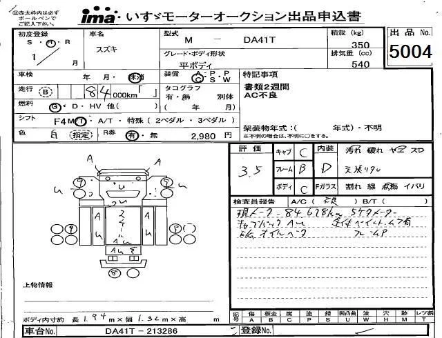 Suzuki CARRY TRUCK с аукциона Японии Isuzu Kobe лот № 5004