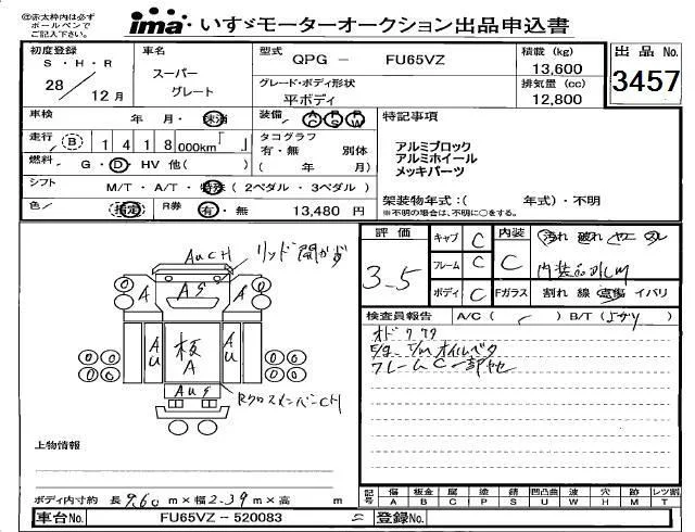 Mitsubishi FUSO TRUCK с аукциона Японии Isuzu Kobe лот № 3457