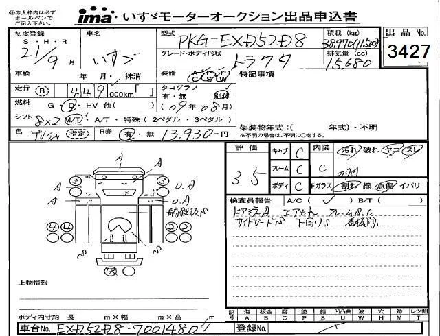 Isuzu TRUCK с аукциона Японии Isuzu Kobe лот № 3427