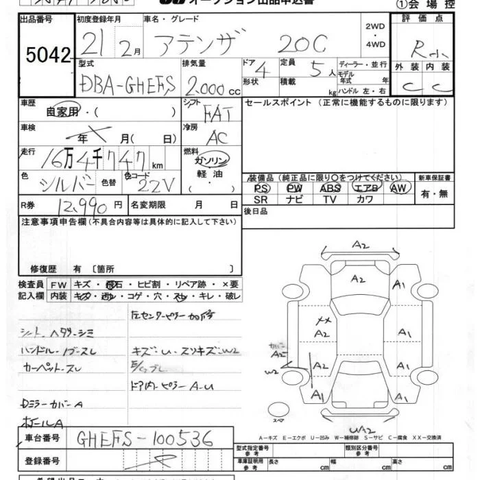 Mazda ATENZA SPORT с аукциона Японии JU Chiba лот № 5042