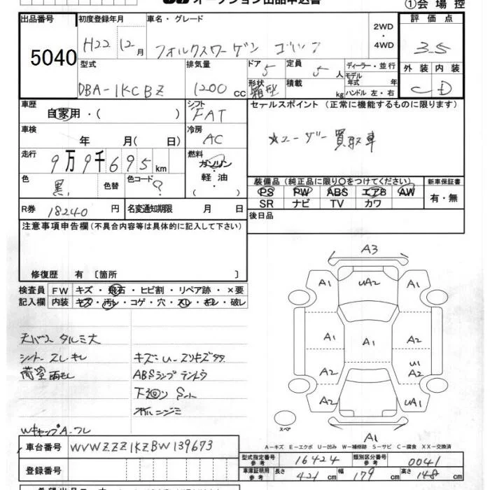Volkswagen GOLF с аукциона Японии JU Chiba лот № 5040