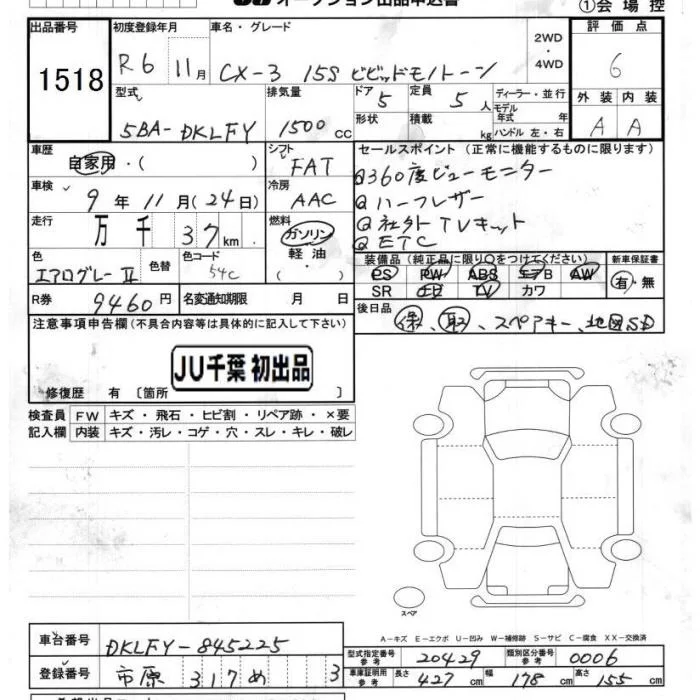 Mazda CX-3 с аукциона Японии JU Chiba лот № 1518