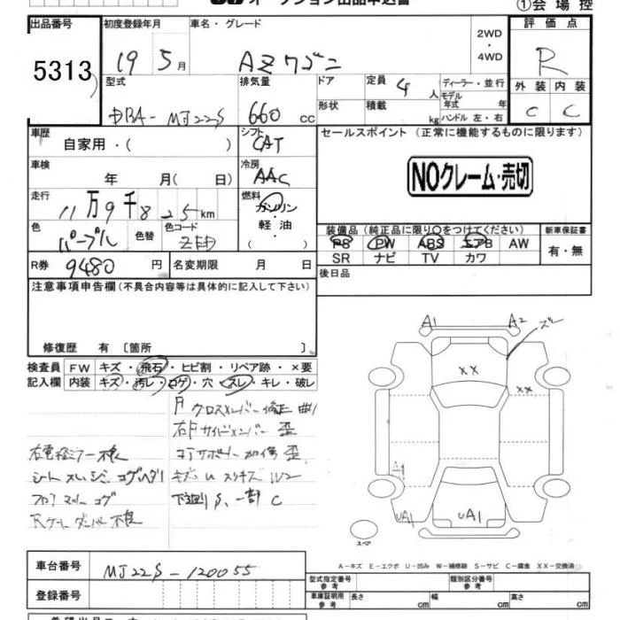 Mazda AZ WAGON с аукциона Японии JU Chiba лот № 5313