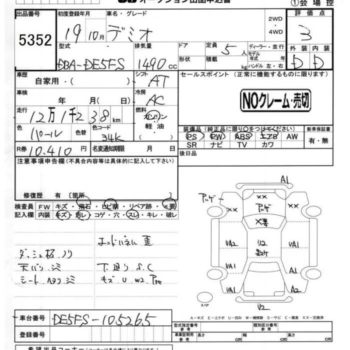 Mazda DEMIO с аукциона Японии JU Chiba лот № 5352