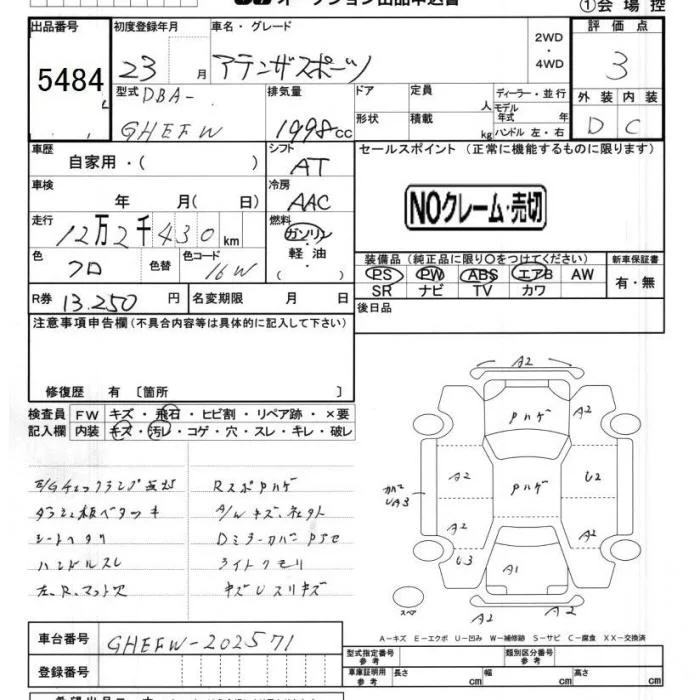 Mazda ATENZA WAGON с аукциона Японии JU Chiba лот № 5484